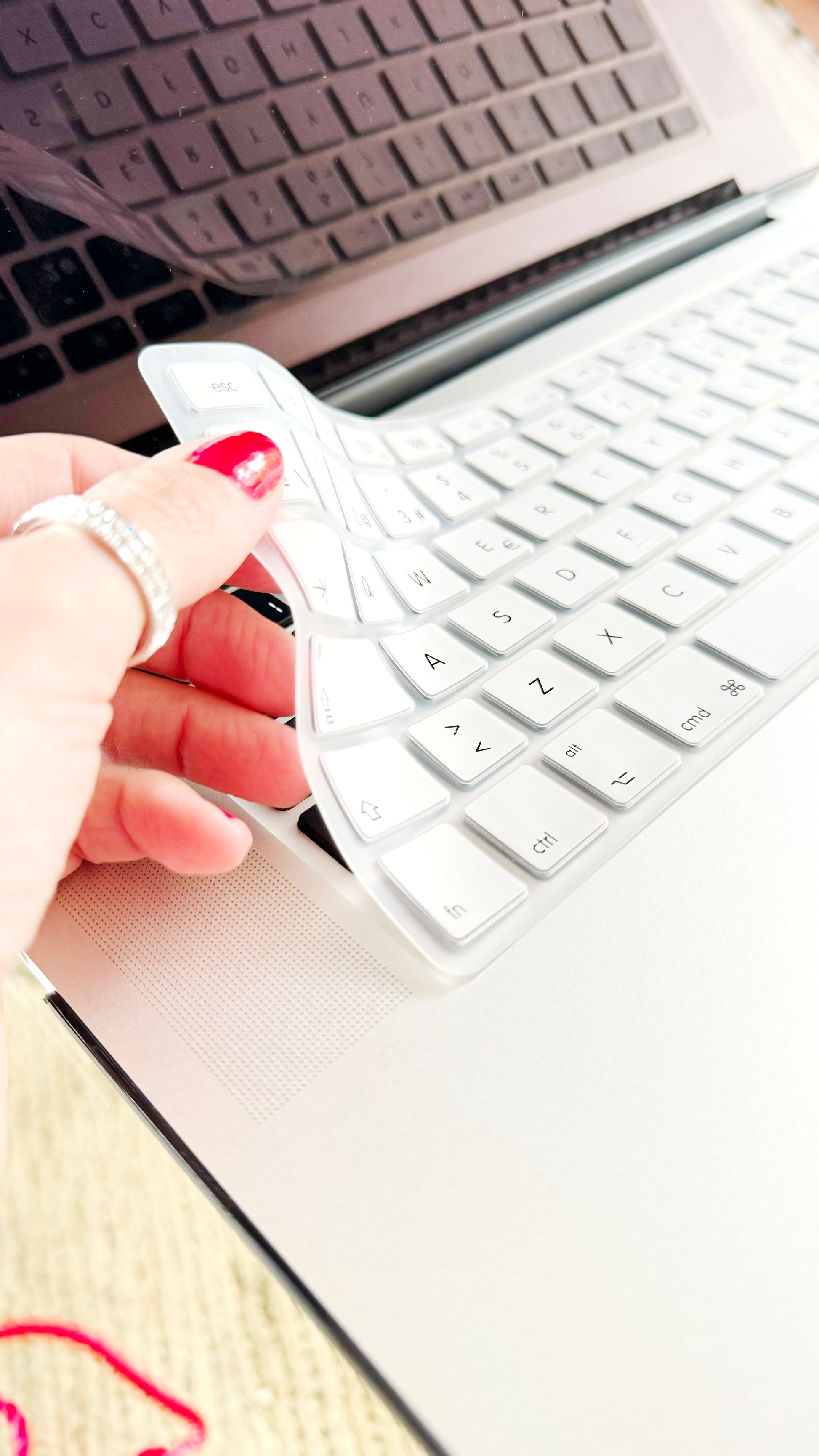 Incluye tapa de arriba en diseño mármol recubierta de silicona suave y lavable y tapa de abajo en silicona suave combinando con diseño. Protector de teclado en idioma según su elección.